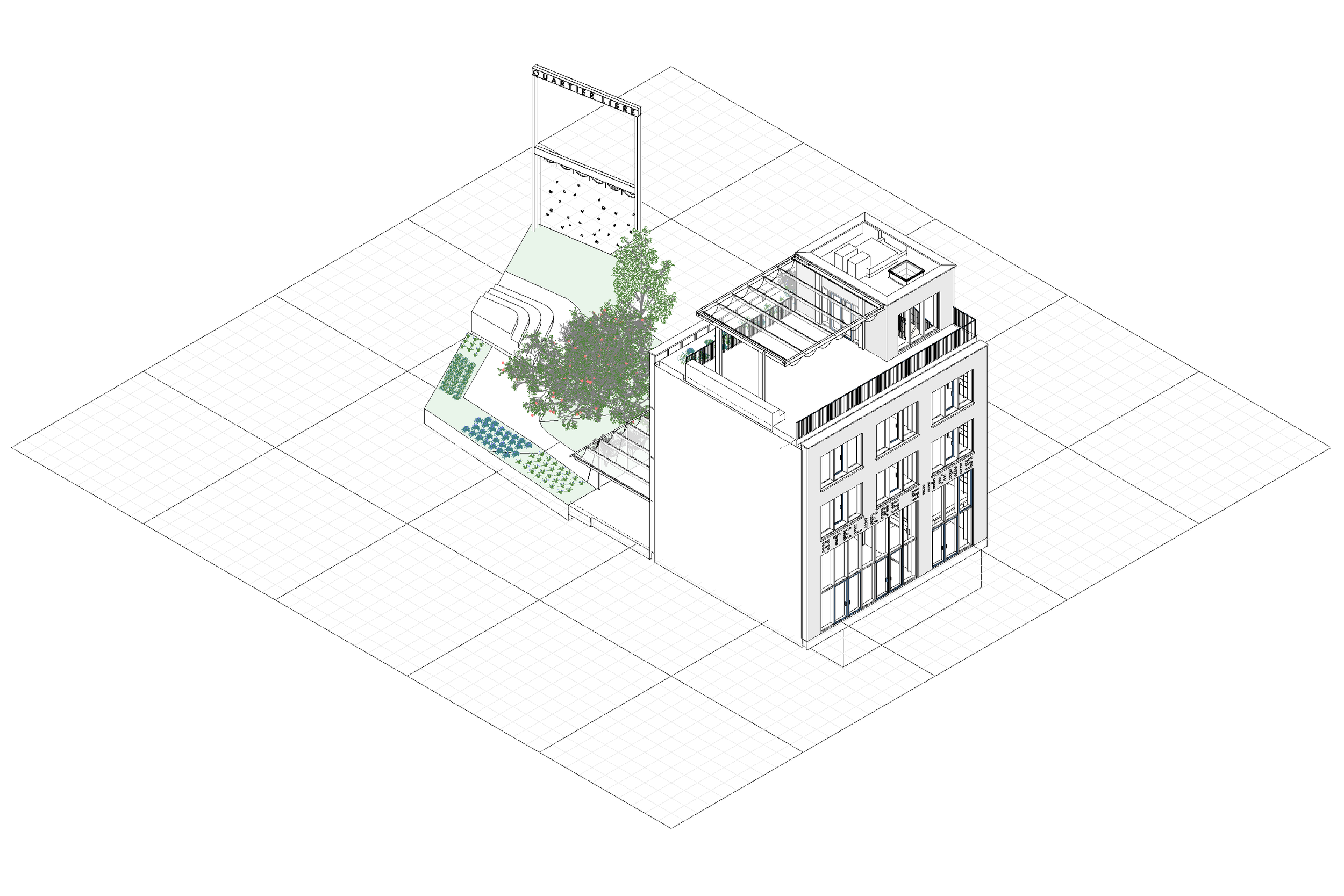 It is not about filling a void, but about staging it. A facility for the community, halfway between the domestic scale of a Brussels house and that of an urban factory.